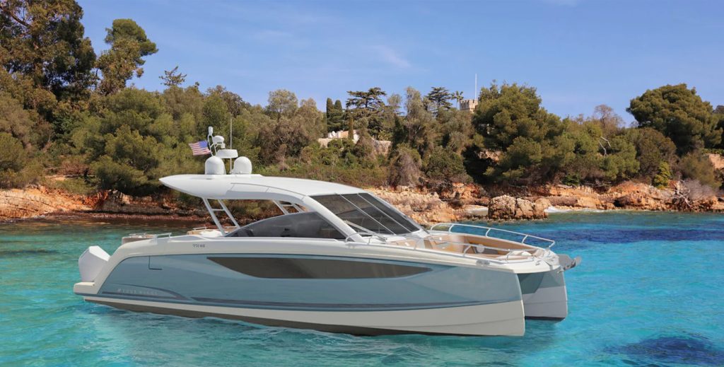 A márka új katamaránját lendületes túrázásra tervezték akár 15 fő számára is kényelmes fedélzeti térrel. A 11,72 méteres hosszához jól passzoló 4,47 méteres szélességbe minden belefér: kokpitja annyira tágas, hogy a kormányálláson felül van benne egy konyha, valamint egy, az aktuális igények szerint alakítható ülőgarnitúra. Két testében pedig elegáns, franciaágyas lakosztályok kaptak helyet, méretes gardróbnyi tárolóhellyel, illetve akkora fürdőszobával, amelyben elfér a leválasztott zuhanyzó is.